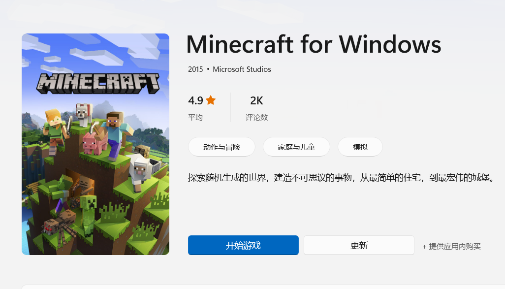 服务器版本1.18.2,安卓可以点击下载按钮直接安装,win10需要到微软商店进行购买[71RMB]